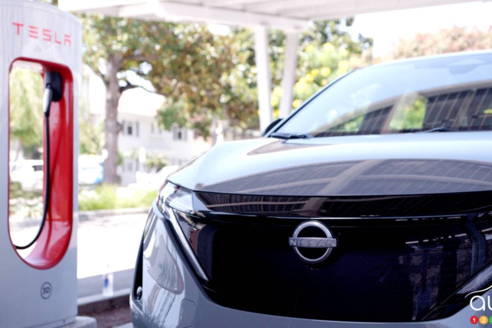 Les propriétaires auront besoin d’un adaptateur pour être en mesure de se brancher aux prises NACS (North American Charging Standard) de Tesla. Il sera offert par Nissan au prix de 309 99 $ CA, et il peut être commandé auprès des concessionnaires de la marque.