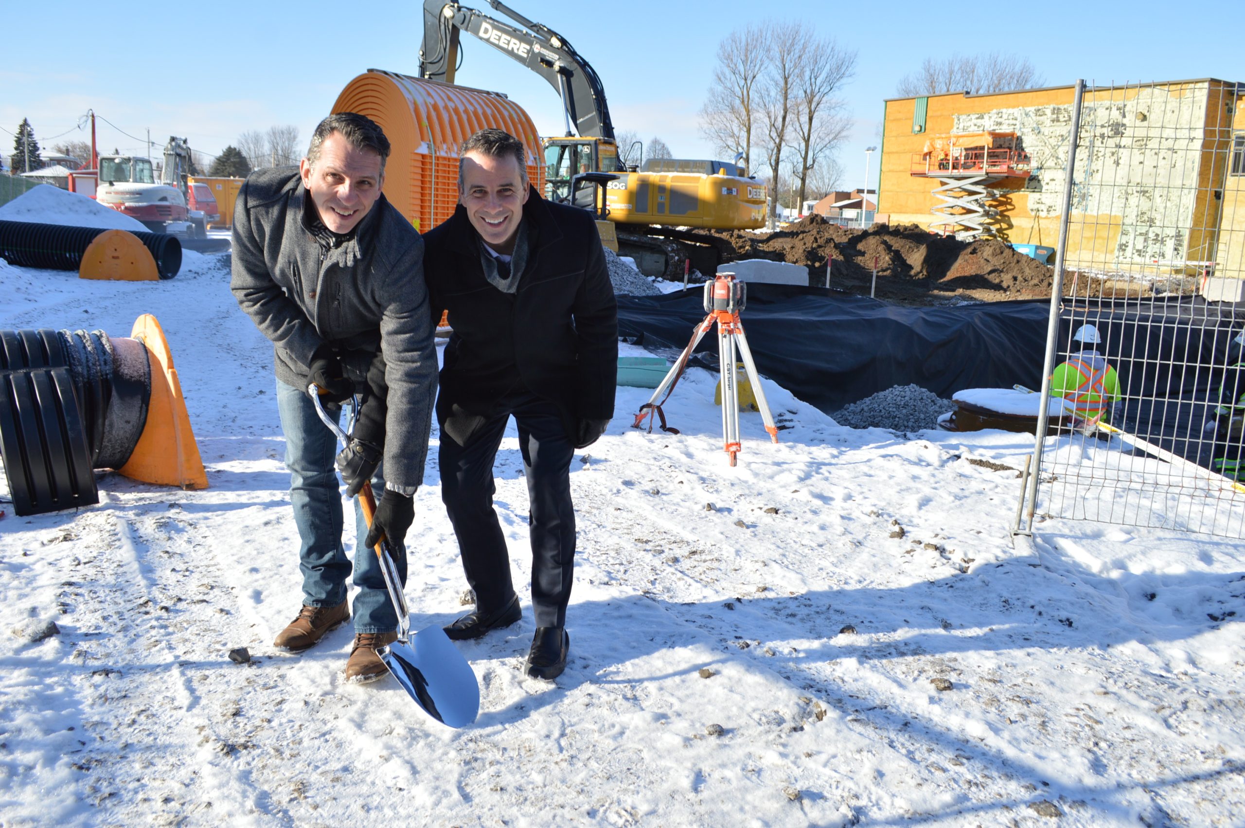 La pelletée de terre officielle a eu lieu le 11 décembre. Le député de Huntingdon, Stéphane Billette, a profité de l’occasion pour annoncer une aide financière additionnelle de près de 2,4 M$. Cet ajout a été nécessaire à la suite de la décision de construire quatre locaux de plus que ce qui était prévu dans le projet initial.