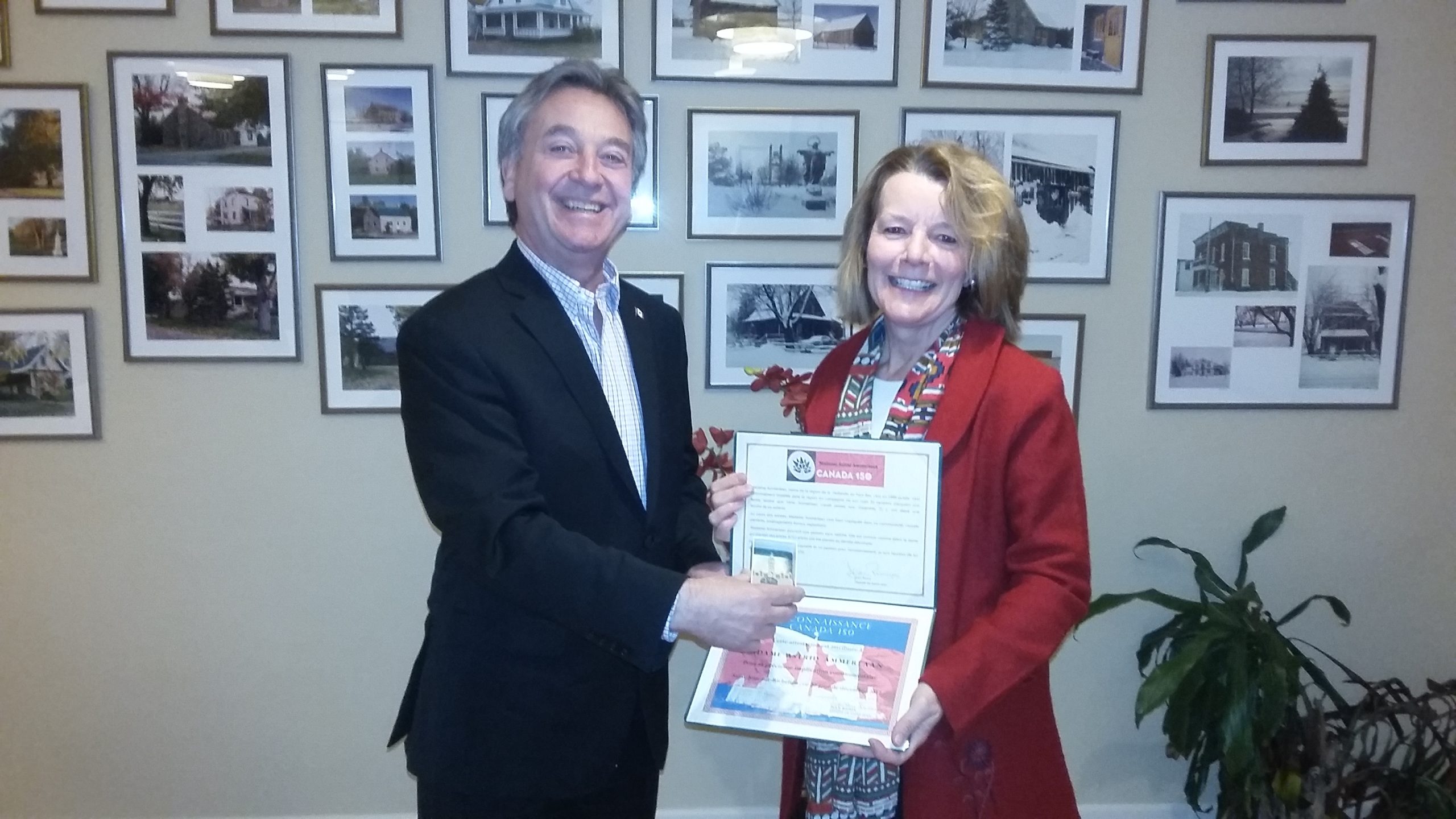 ACTUALITÉ – Le député fédéral de la circonscription de Saint-Jean, Jean Rioux, a remis une épinglette du 150e anniversaire du Canada à 23 citoyens du Haut-Richelieu, en reconnaissance de leur contribution à la communauté.