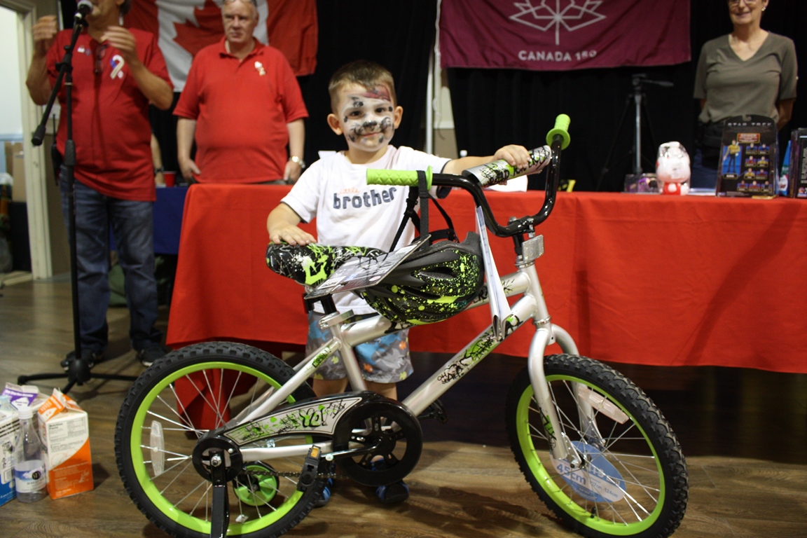 L’implication de la municipalité de Lacolle, du corps de cadets 2698 Sieur de Beaujeu et de nombreux bénévoles, a permis à cet événement de connaître un véritable succès. Jeux gonflables, goûter et maquillage pour enfants, gâteau et prix de présence étaient au menu. Nathan Chatelois (sur la photo), de Saint-Paul, Noah Bombardier, de Lacolle, et Félicia Côté, de Napierville, ont gagné un vélo. Le tirage moitié/moitié a été remporté par Henri Dionne, de Lacolle.