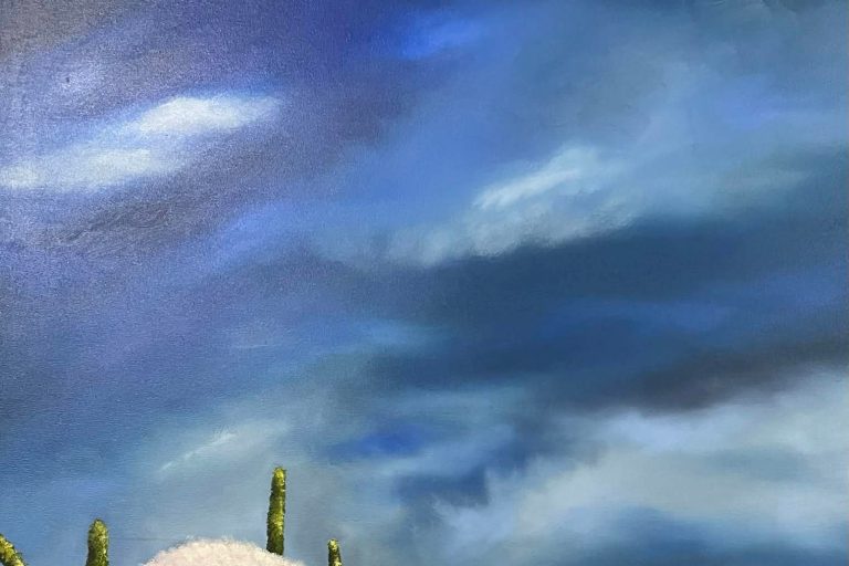 « Également, différents ciels naîtront, habitant totalement de grands formats, permettant ainsi le voyage et le rêve dans cette immensité bleue et exprimant la nature et l’imaginaire à ma façon », conclut l’artiste.