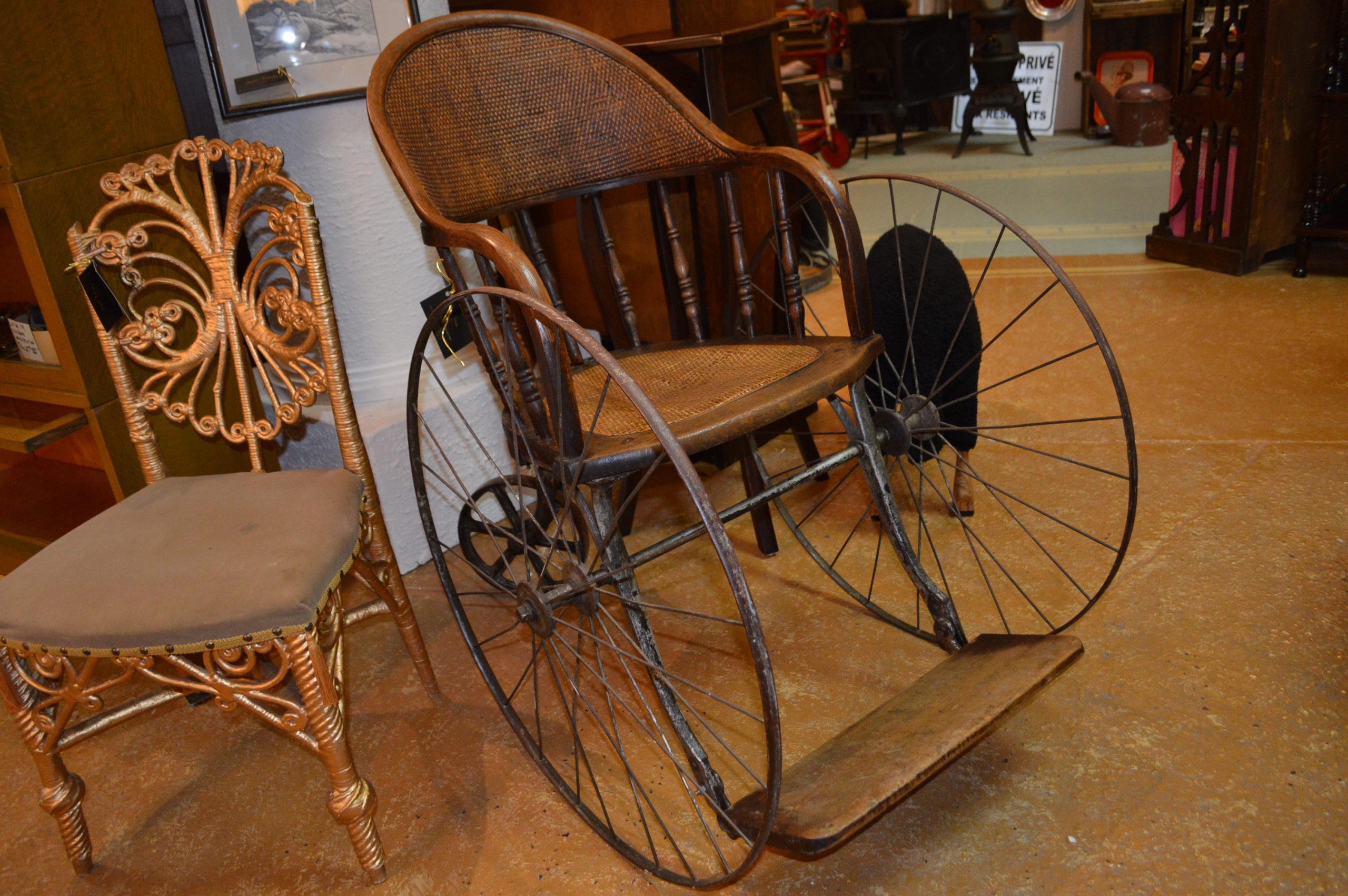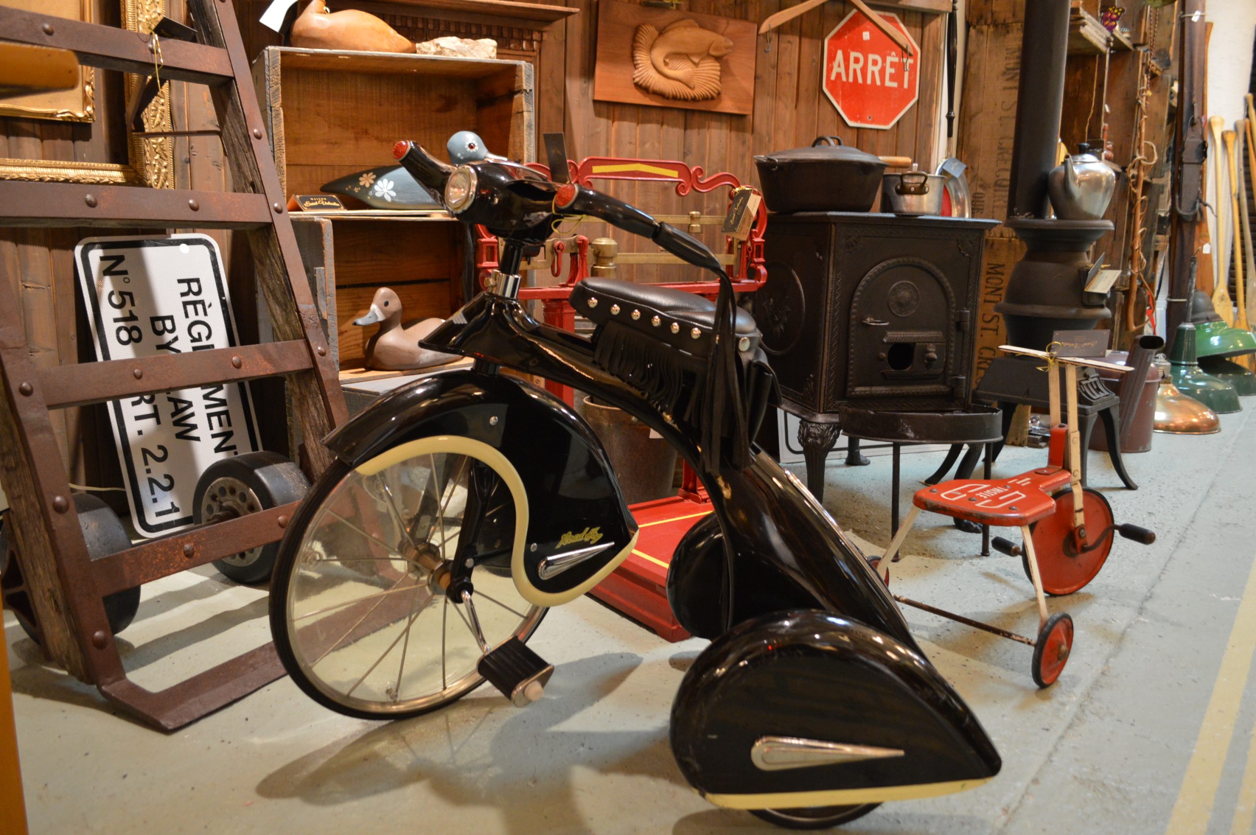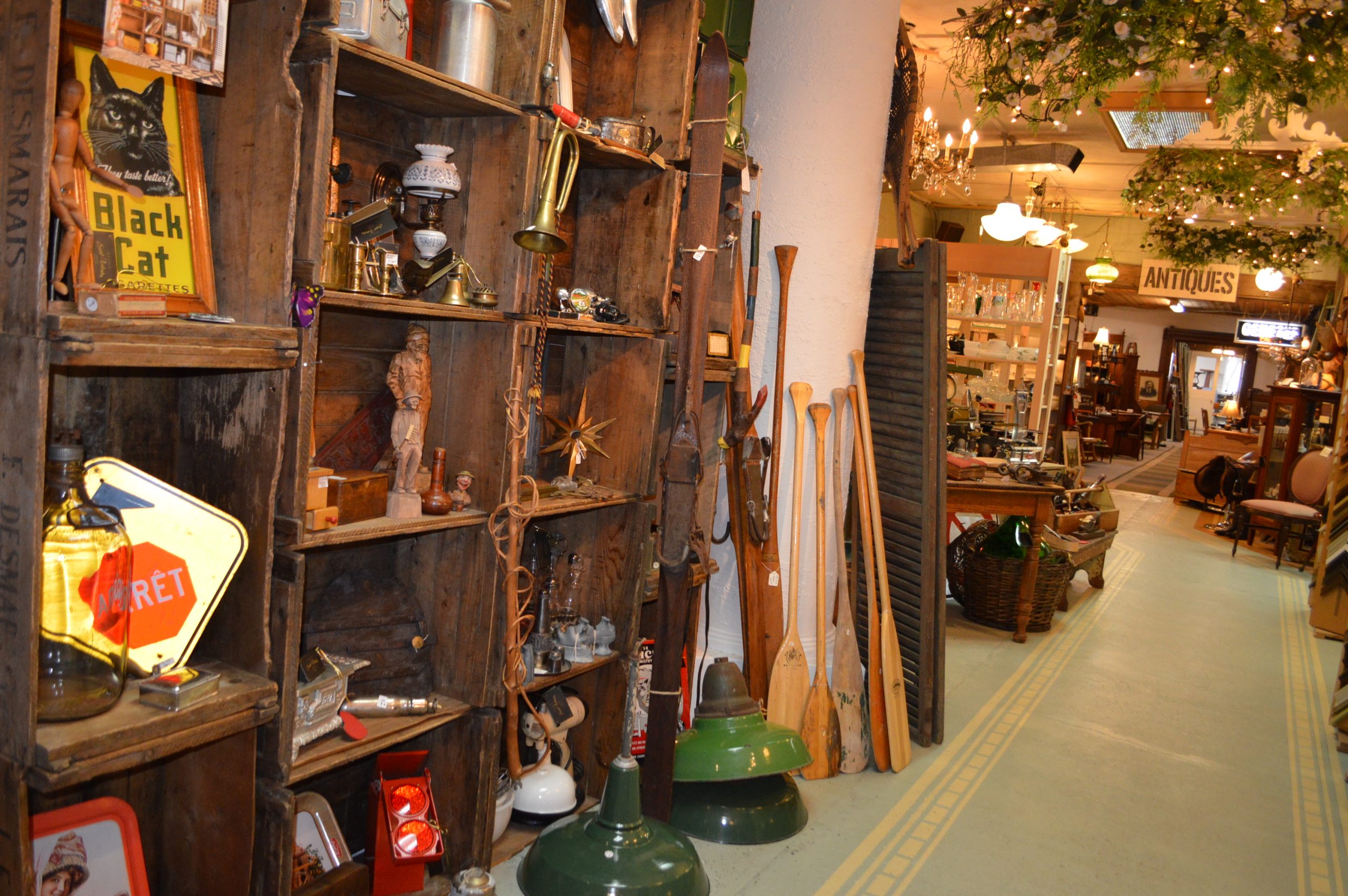 À l’arrière du magasin se trouve la section brocante, où l’on peut dénicher de beaux meubles antiques qui n’ont pas été restaurés, à moindre coût.
