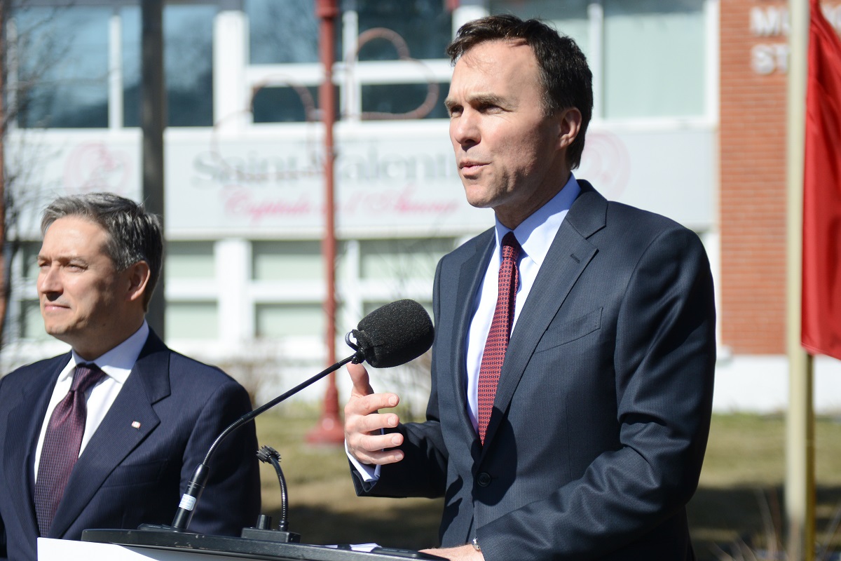 POLITIQUE. Le ministre des Finances, Bill Morneau, était à Saint-Valentin mardi après-midi pour promouvoir les mesures de son budget, dont l’investissement de 500 M$ sur cinq ans pour accroître l’accès aux services à large bande de l’Internet dans les collectivités rurales et éloignées.