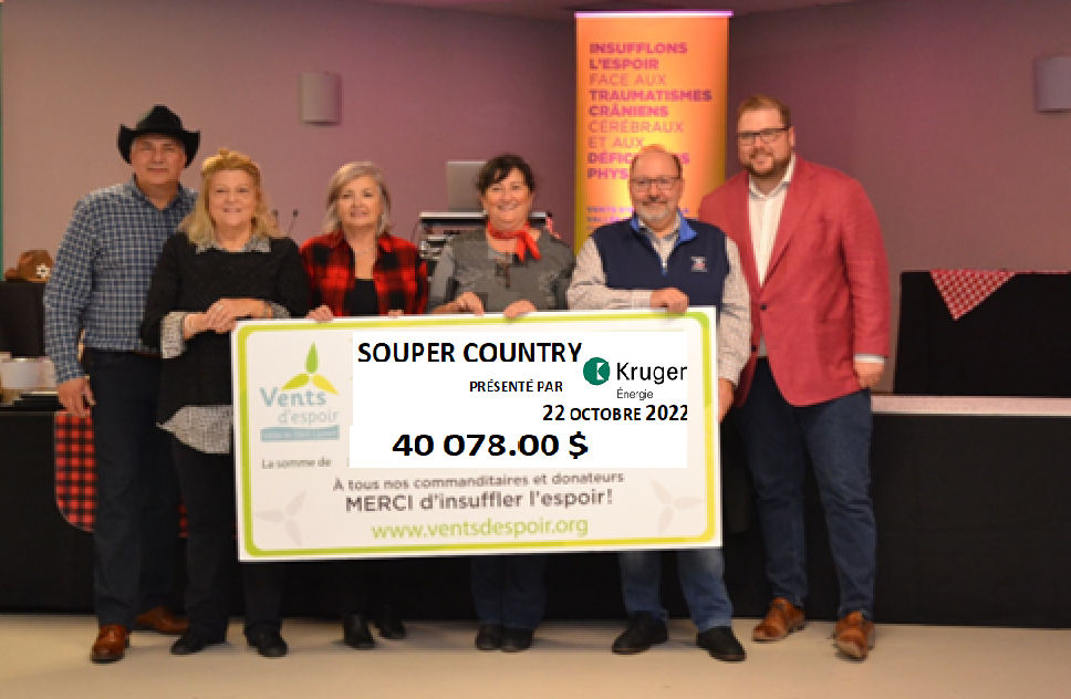 Actualité. L’organisme Vents d’espoir a récolté 40 078 $ lors de la 5e édition de son souper-bénéfice, qui s’est tenu le sous le thème ”country”.
