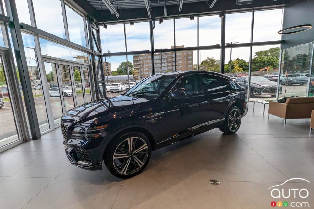 L’événement s’est déroulé au tout nouveau point de vente GRX (Genesis Retail Experience) au cœur de Montréal, un concessionnaire à part entière qui a ouvert officiellement ses portes deux jours seulement avant cette présentation du GV80 Coupé. La version présentée était un modèle de préproduction, mais on peut parler d'un véhicule prêt pour entrer en production.