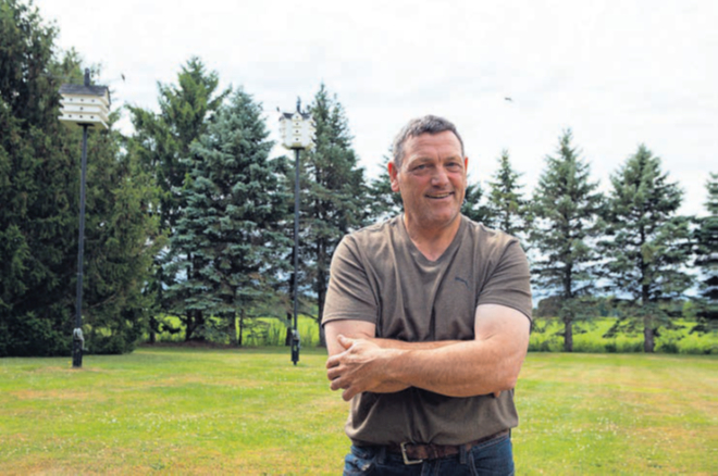 François Fleury contribue aussi à la vitalité de la population d’hirondelles. Il a installé quatre cabanes sur son terrain, qu’il appelle des condominiums, qui accueillent 70 couples d’hirondelles noires.