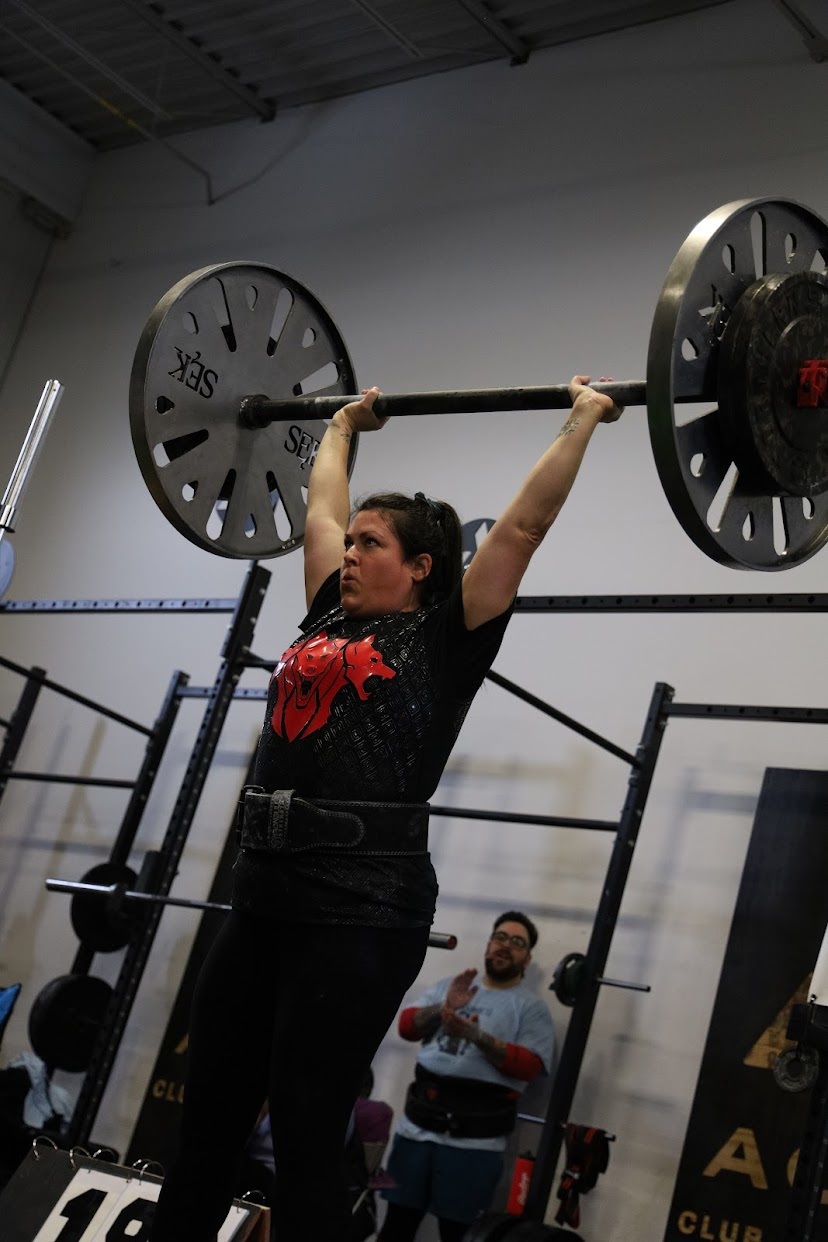 Marie-Fée Leroux ne s’est pas contentée de remporter le titre canadien. Elle a aussi établi quatre nouveaux records. Le 3 août, lors d’une compétition à Gatineau, à l’épreuve de l’Axle Clean and Press, elle a soulevé une barre de 197,6 lb à deux mains, au-dessus de sa tête.