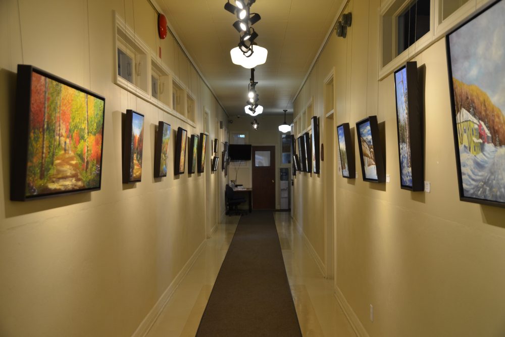 Le Carrefour culturel est situé à l’intérieur de l’Édifice municipal, au 790, chemin de la 4e Ligne. Il s’agit d’un espace dont les dimensions sont de 58 pieds de longueur, par 7 pieds de hauteur.